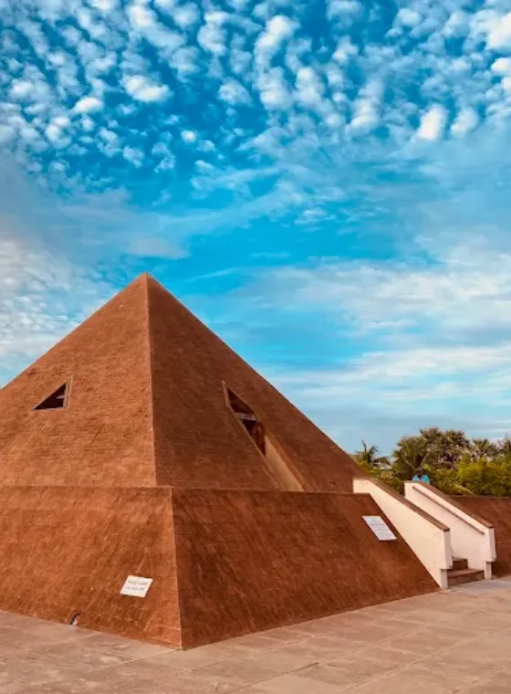 The pyramid shape, historical depth, and serene environment make it one of the most unique places to visit in Pondy, far removed from the usual tourist crowds.